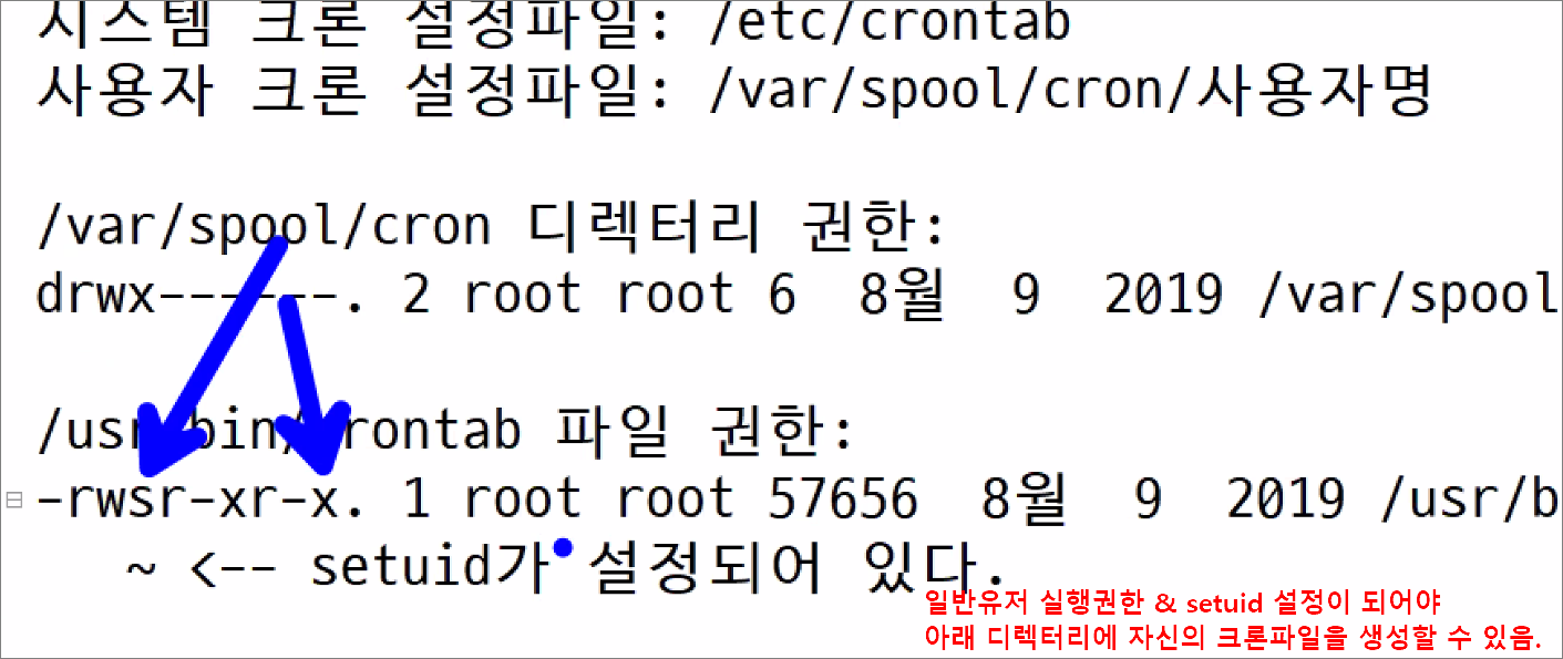 다시 말해서 root가 /etc/crontab을 편집하고 실행은 일반유저가 실행할 수 있게 설정하면 가능하다.
