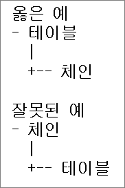 각 테이블의 체인의 종류를 확인한다.
