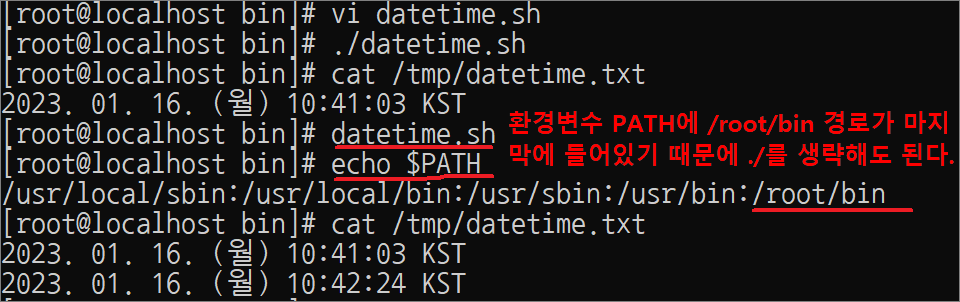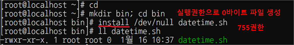 실행 스크립트명: /root/bin/datetime.sh
