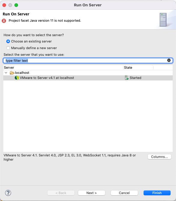 다시 실행하고자 하니 Project facet Java version 11 is not supported.