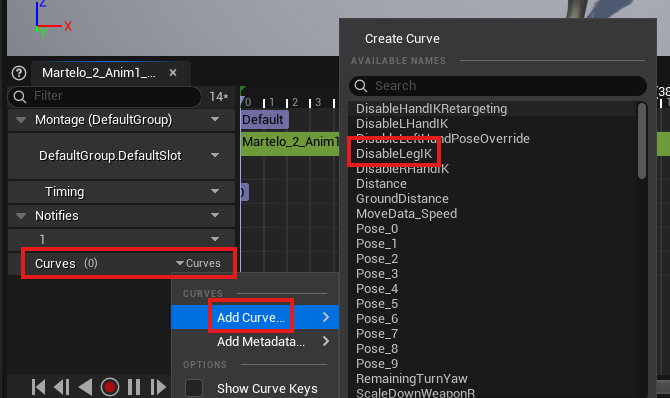 강의에서 문제된 부분은 다리 부분이므로 DisableLegIK 커브를 만들어 줌