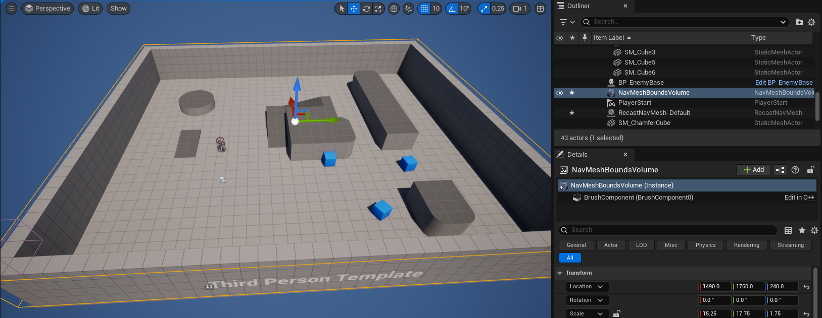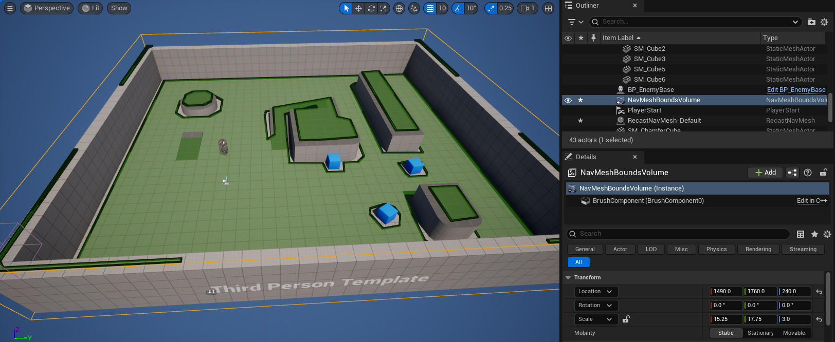 NavMeshBoundsVolume을 이용해 영역을 지정해 줌