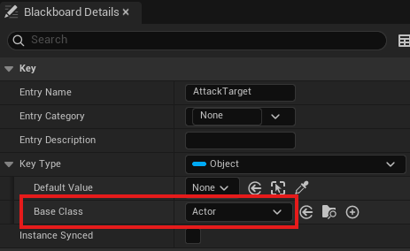 생성된 오브젝트 변수의 Detail 패널에서 Base Class를 Actor로 설정