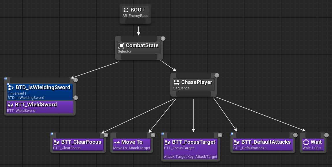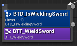 검이 소환되었으면 어택을 실행해야하고, 소환되지 않았으면 WieldSword를 실행해야하므로 Selector로 연결해주어야 함