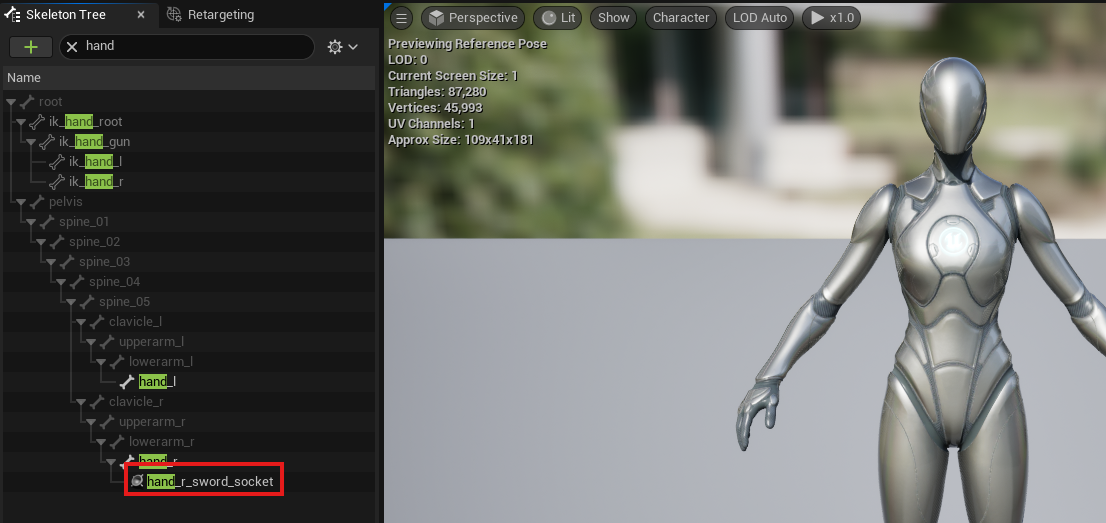 일단 플레이어의 스켈레톤 메시에서 오른쪽 손에 소켓을 달아줌