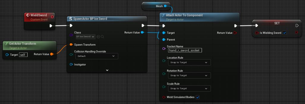 이것은 아까 만든 오른쪽 손 소켓에 검을 스폰해주는 로직임