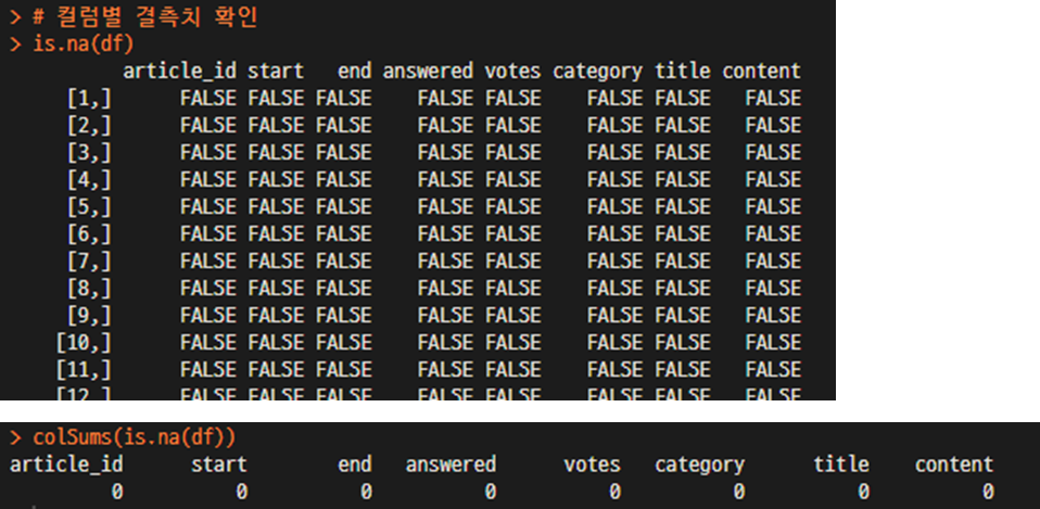 colSums(is.na(df)) # column별 결측치의 갯수를 확인