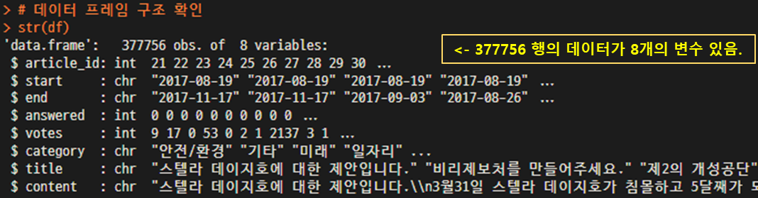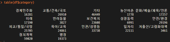 df$answer <- df$votes > 200000 # 20만개 이상의 동의 ==> 답변 대상 청원