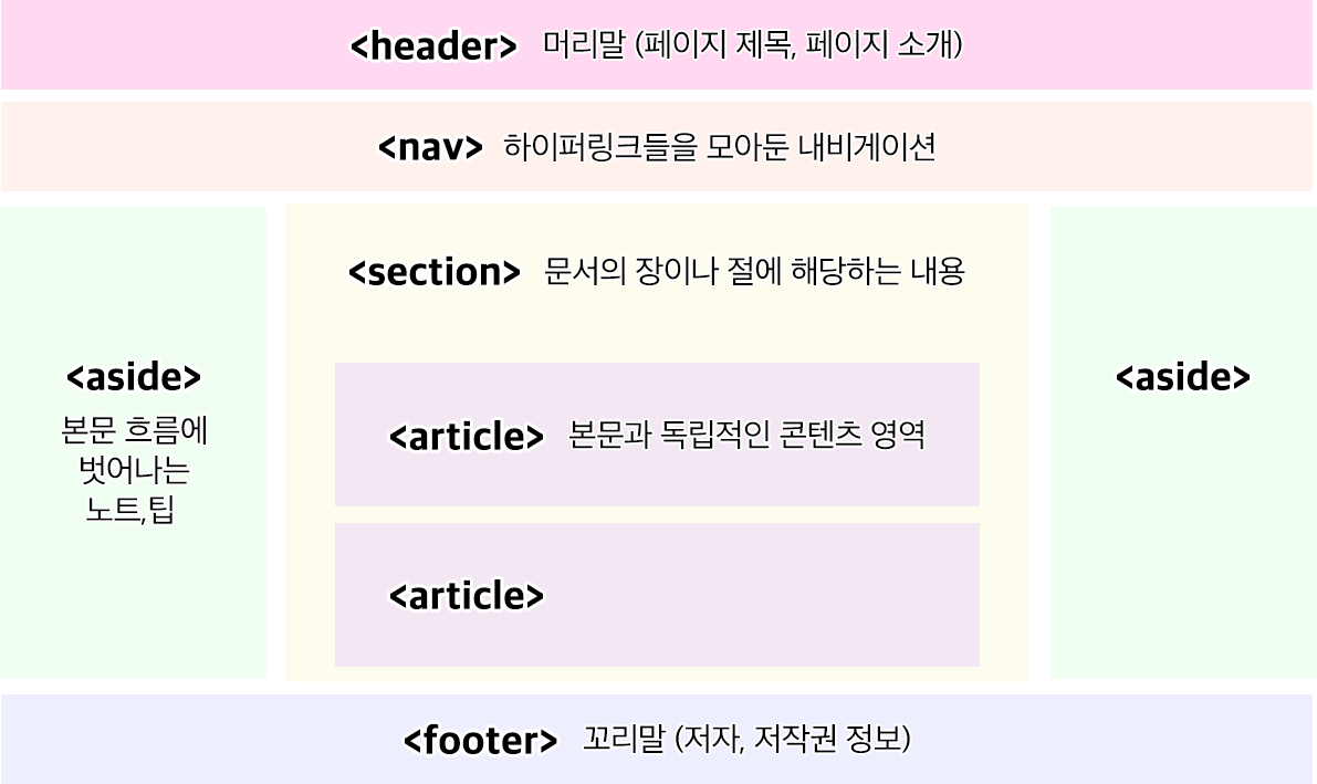 · 웹 페이지의 태그에 의미를 부여하는 태그