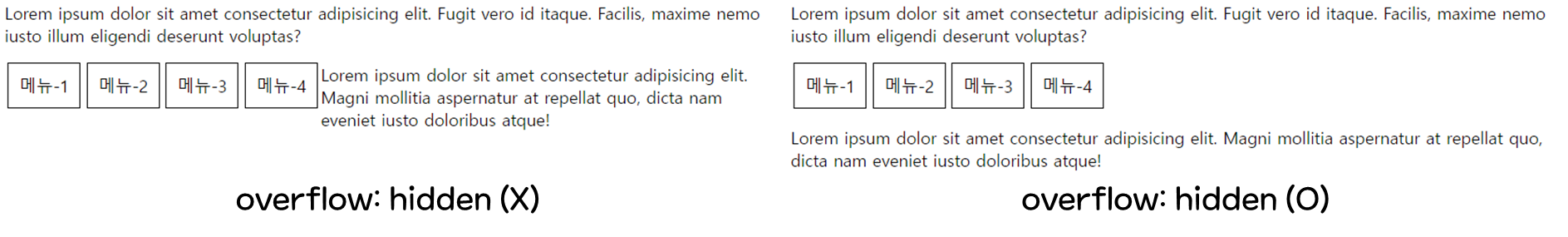 "자손에게 float 속성 지정 & 부모의 overflow-hidden 적용"