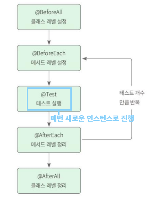 - JUnit은 메서드마다 새로운 인스턴스를 만듦