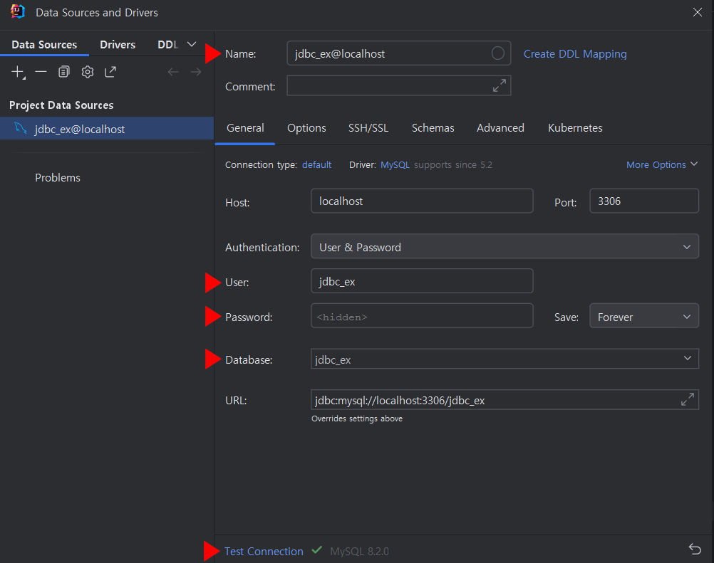 String url = "jdbc:mysql://127.0.0.1:3306/jdbc_ex"; // 연결문자열(접속url)