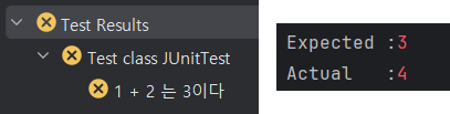 Assertions.assertEquals(a + b, sum); // 기대값, 실제값