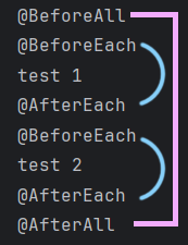 - 공통적인 작업(ex.DB연결) 有 - 시작할 때 한번~ (BeforeAll)