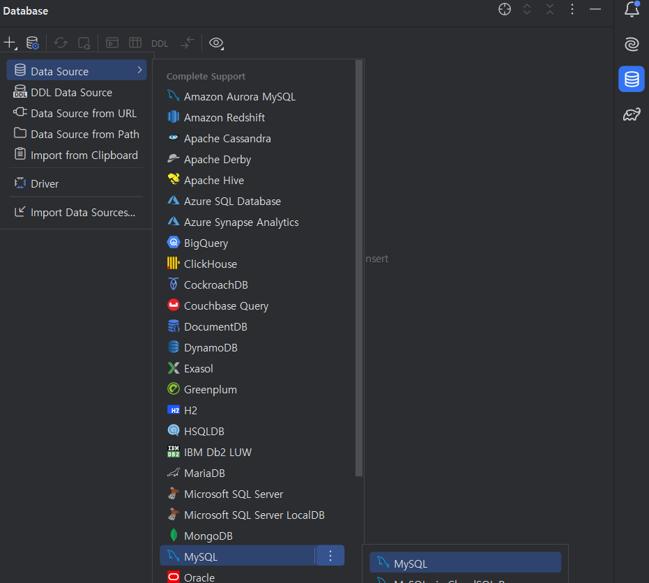 ⇨ 프로젝트 단위로 관리되는 정보 sql파일 생성 - DB 연결