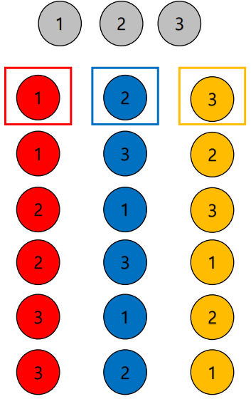 ex) 숫자가 쓰여있는 회색 공 3개를 순서대로 빨, 파, 노를 칠하는 경우의 수
