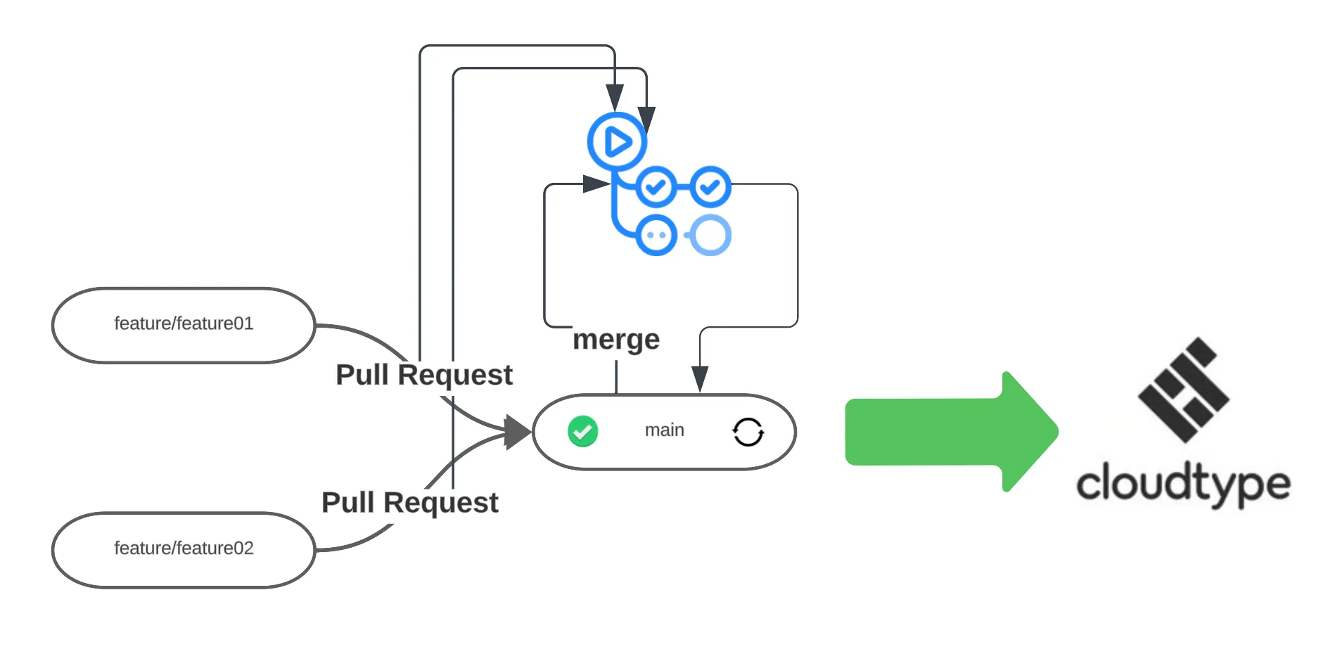main브랜치에 merge 되면 해당 브랜치를 cloudtype 서버에 배포