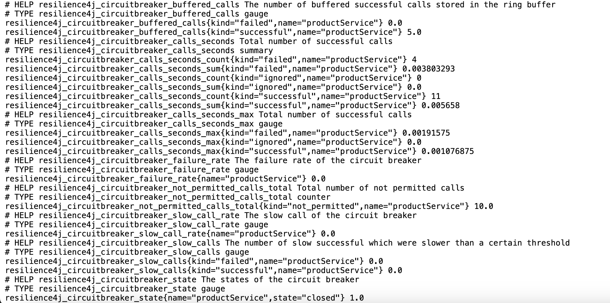 Spring Boot ActuatorPrometheusimplementation 'io.github.resilience4j:resilience4j-spring-boot3:2.2.0'implementation 'org.springframework.boot:spring-boot-starter-aop'