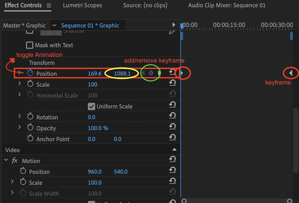 Position을 클릭하여 활성화하면 마름모 모양표시가 생기는데