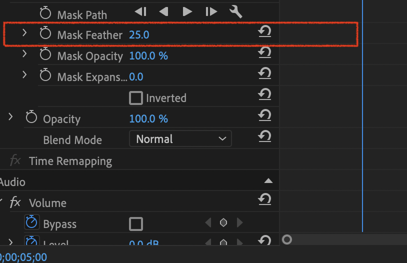 2번째에 있는 트랙의 EFFECT > OPACITY 항목