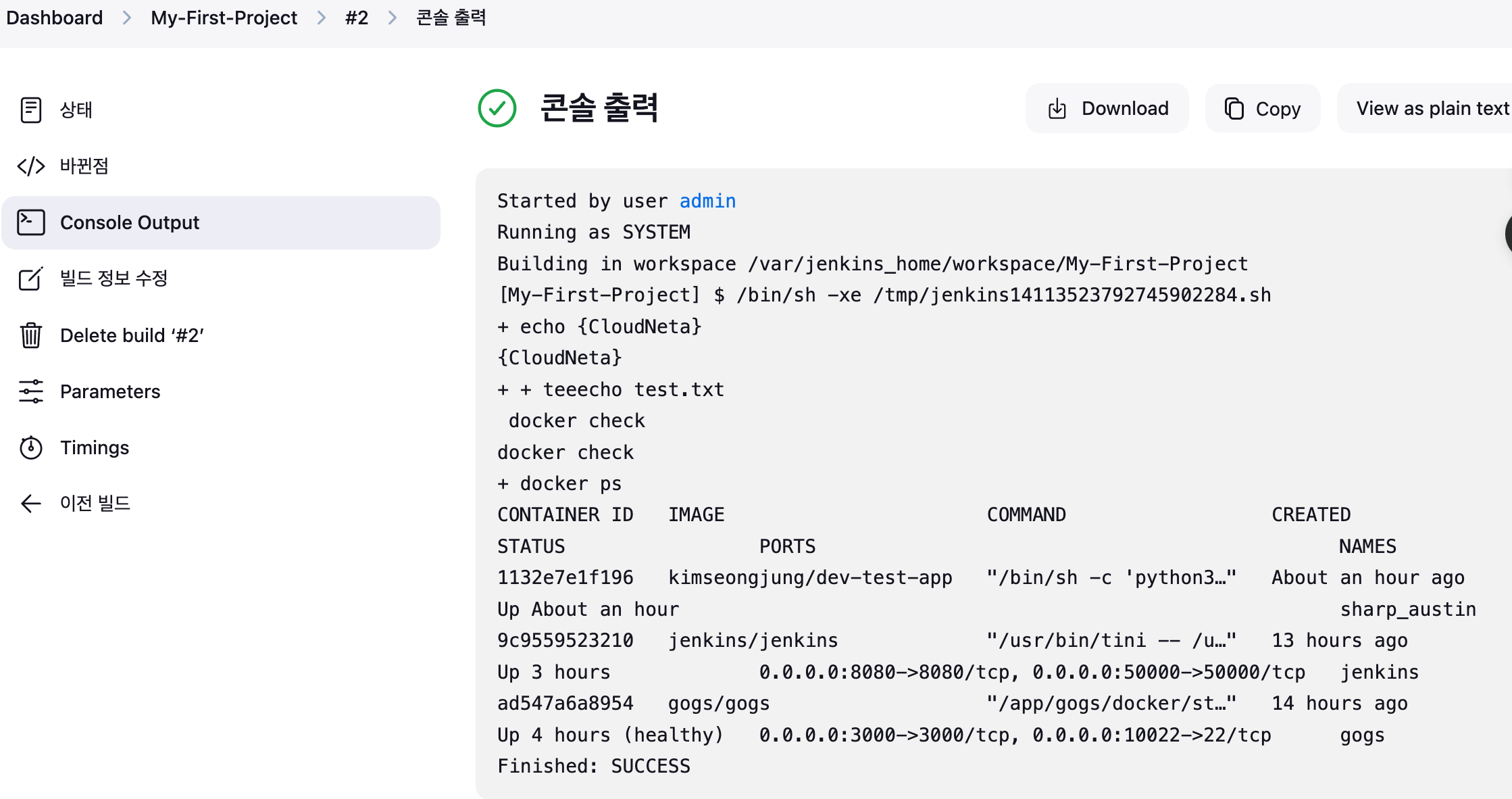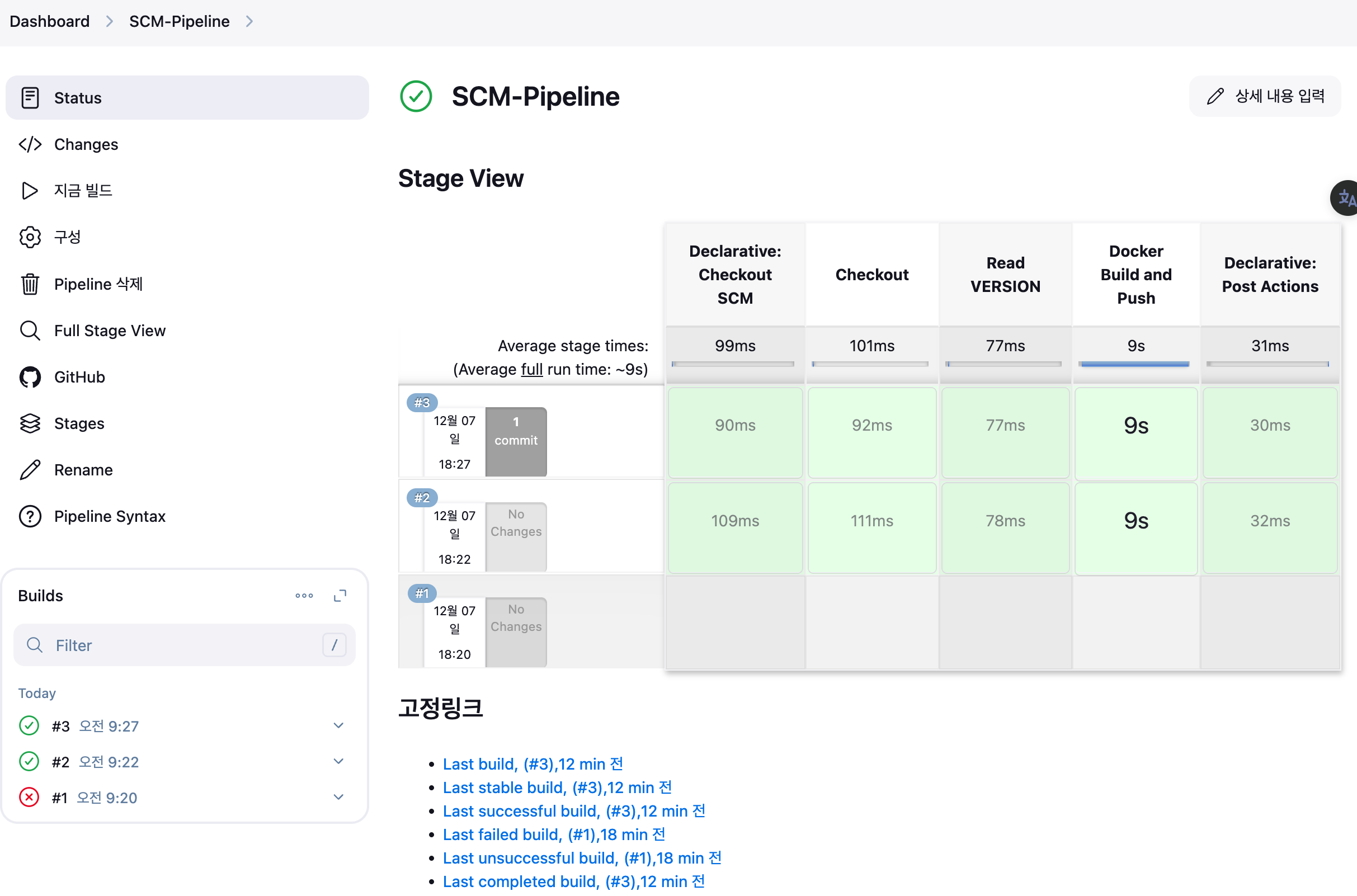 지금 빌드! : 빌드 단계 걸린 시간, 빌드 단계 별 로그