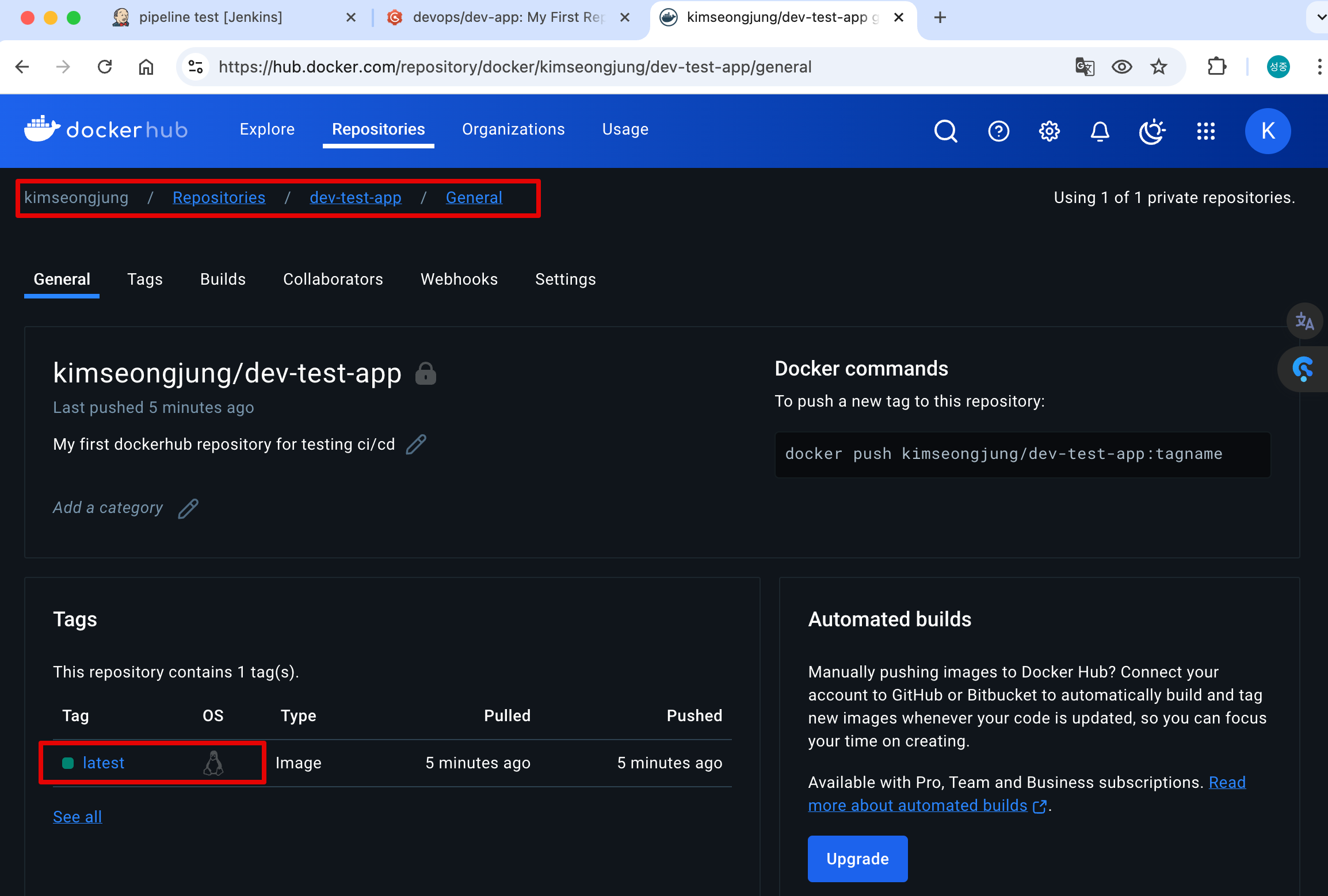 DOCKER_IMAGE = '<자신의 도커 허브 계정>/dev-app' // Docker 이미지 이름