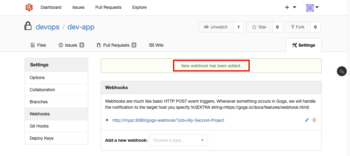 we will handle the notification to the target host you specify. %!(EXTRA string=https://gogs.io/docs/features/webhook.html)