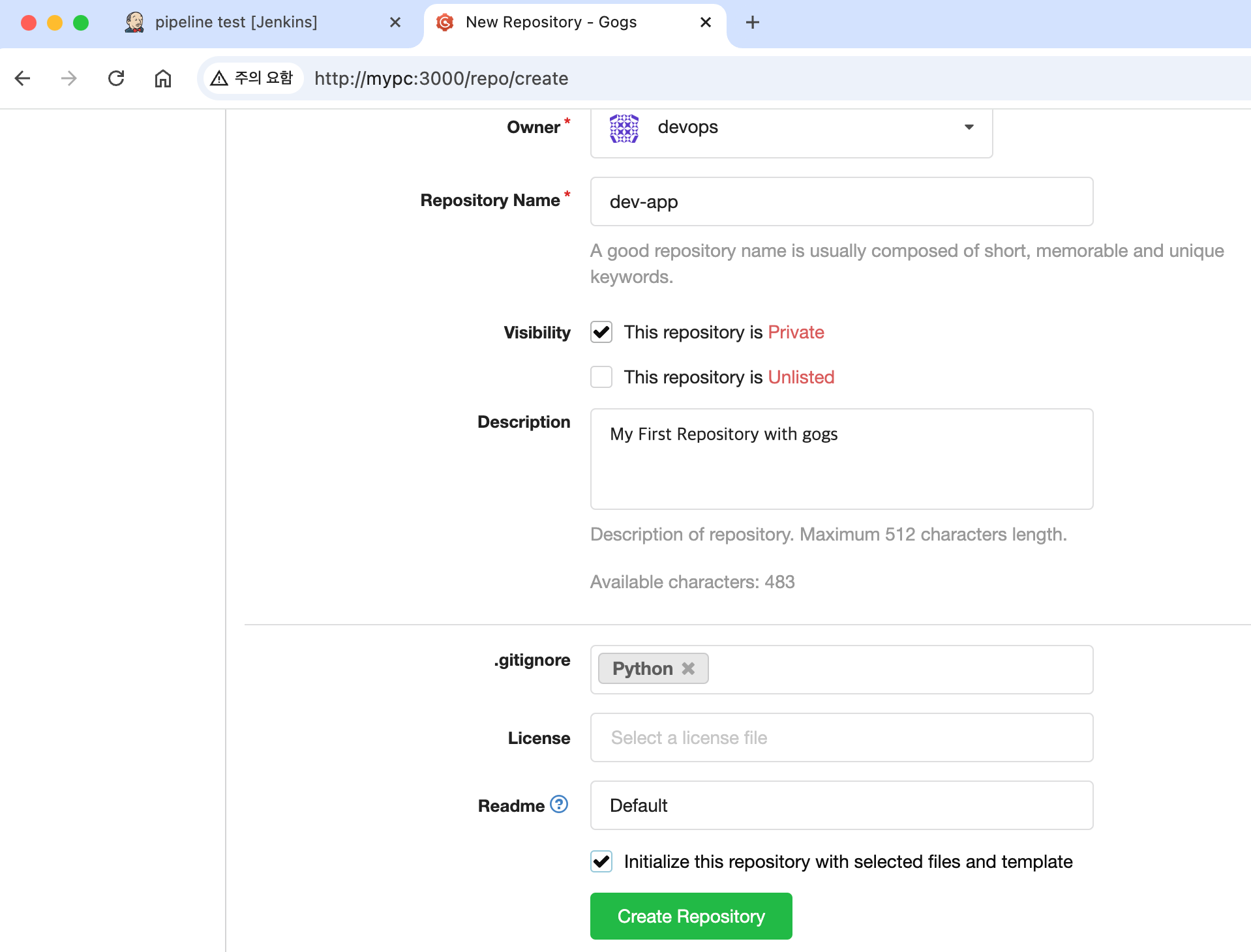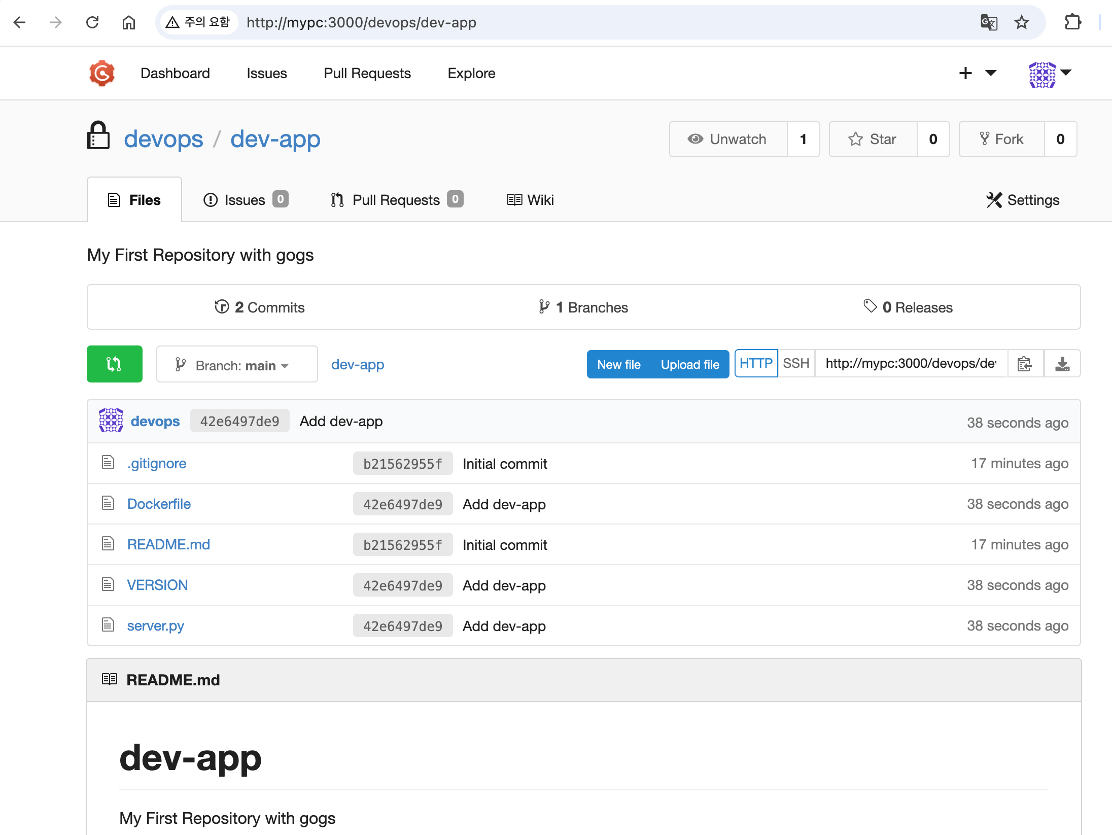 http://***<mac IP>***:3000/***<Gogs 계정명>***/dev-app ← .git 은 제거http://***<mac IP>***:3000/***<Gogs 계정명>***/dev-app)