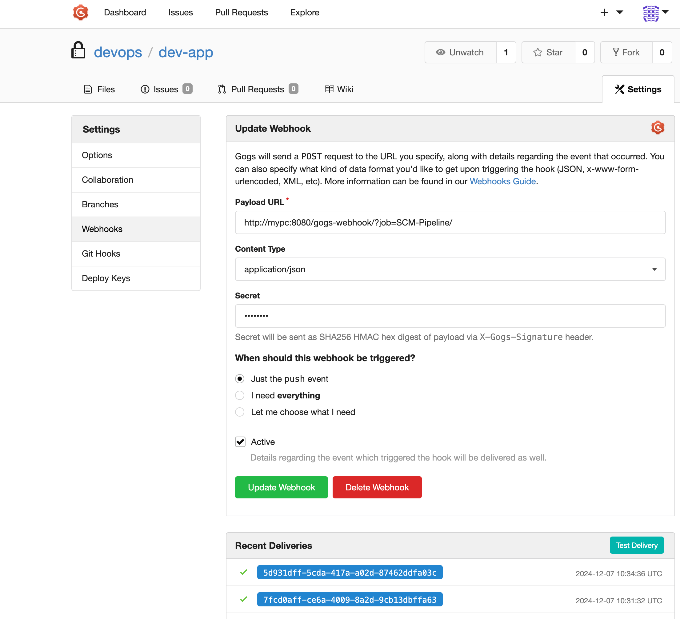 When should this webhook be triggered? : Just the push event