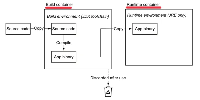 # RUN 컴파일 시 소스코드와 java 컴파일러(javac)가 포함되어 있음. 실제 애플리케이션 실행에 필요 없음.