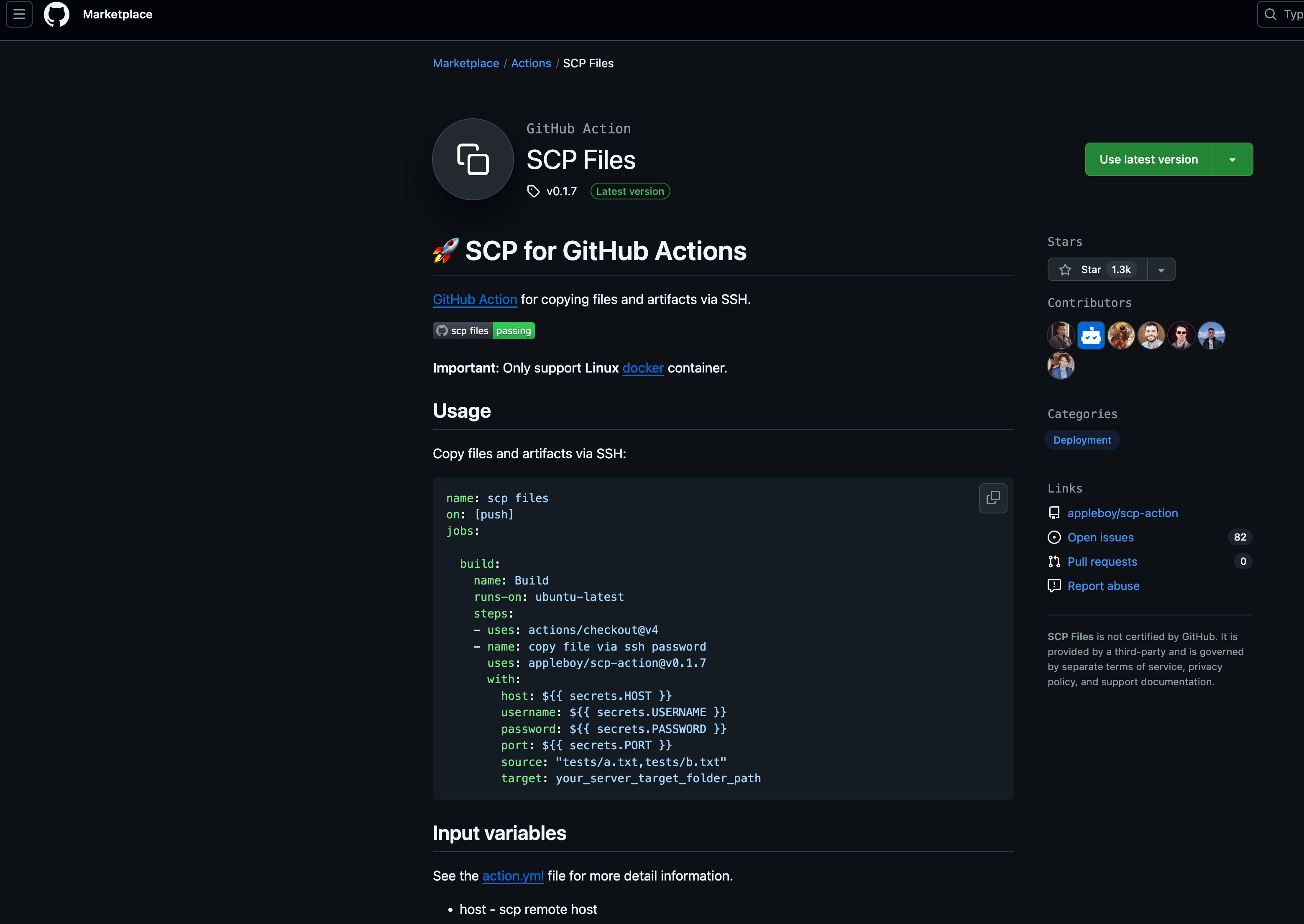scp : GitHub Action that copy files and artifacts via SSH - Github , marketplace