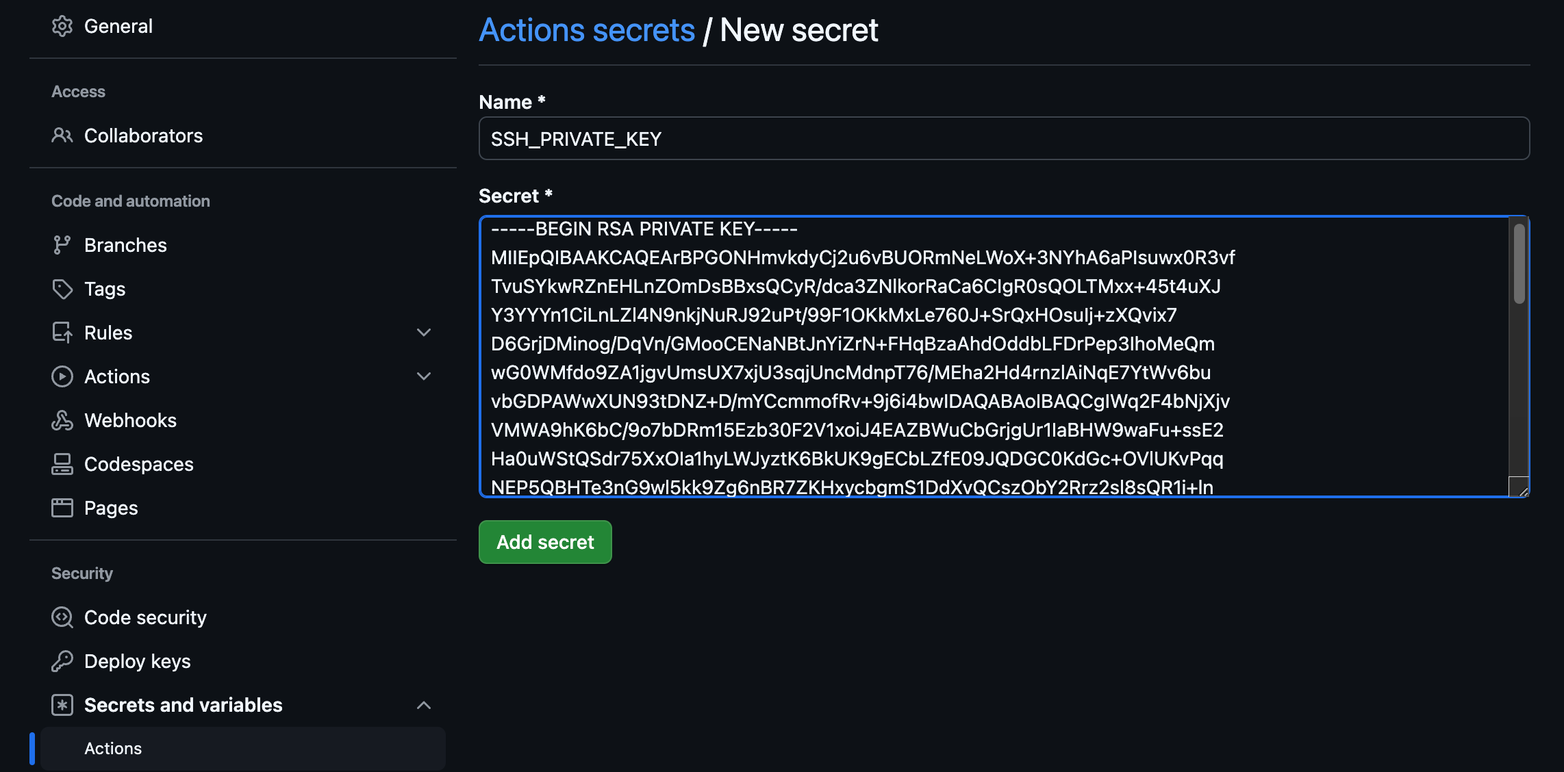 key: ${{ secrets.SSH_PRIVATE_KEY }}