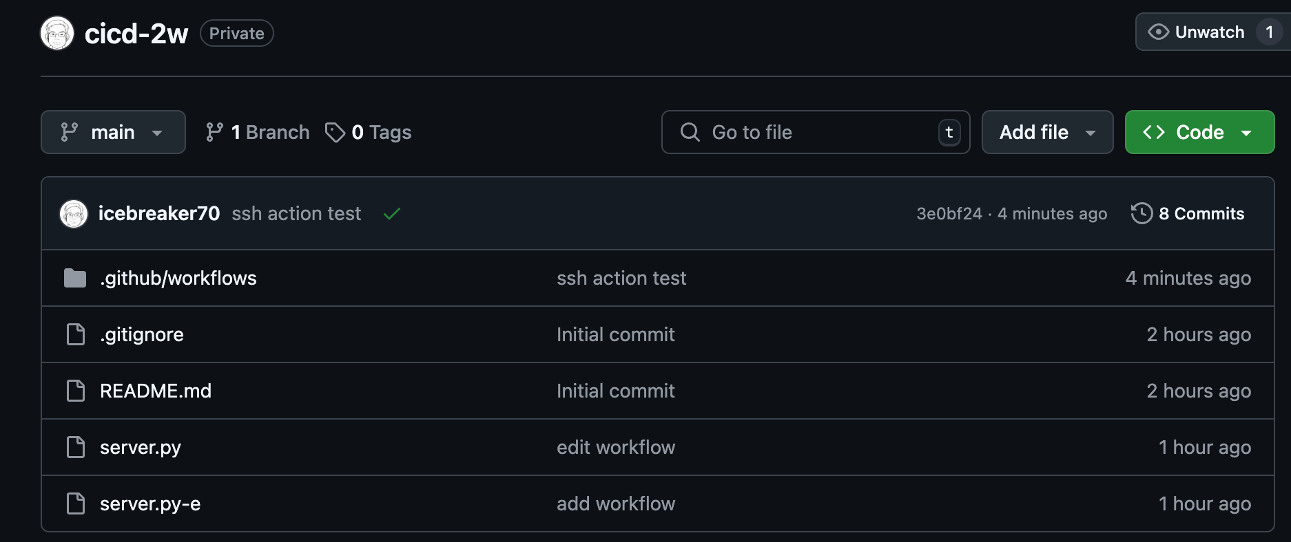 ❯ git add . && git commit -m "ssh action test" && git push origin main