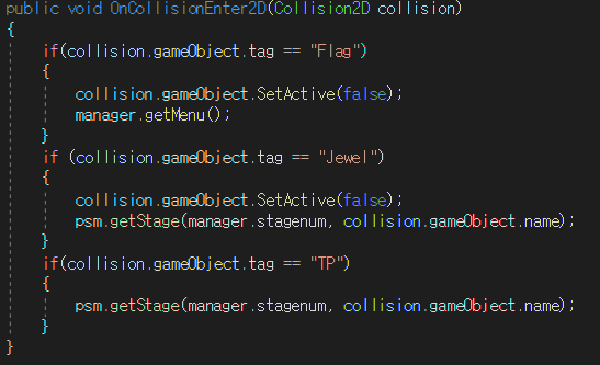 이 로직을 시전을 시키려면 텔레포트 오브젝트 각각에 특정 위치로 이동하라고 하는 반복적인 로직을 집어넣어 줄 수도 있었지만, 한가지의 코드로 모든 텔레포트의 기능을 통제 하고 싶어 개발을 했다.