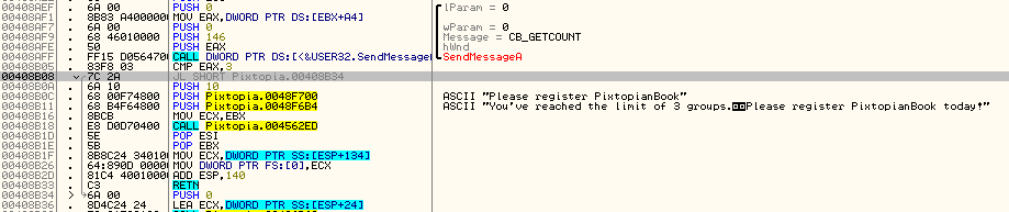 다음과 같이 GetModuleHandleA라는 함수를 실행하고 함수의 결과 값이 0인지 비교합니다. 하지만 GetModuleHandleA는 해당 프로세스가 메모리에 매핑된 주소를 찾는것으로 이는 항상 0x00400000이므로 그 아래의 JE는 항상 jmp가 되지 않습니다. 따라서 이부분을 jmp로 바꾸어주어 첫번째 Nag를 우회하거나 entry point 자체를 바꾸어 해결 할 수 있습니다.