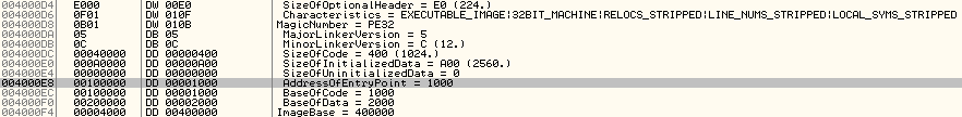 Size of Code(0xDC) : 0x40000400 -> 0x00000400