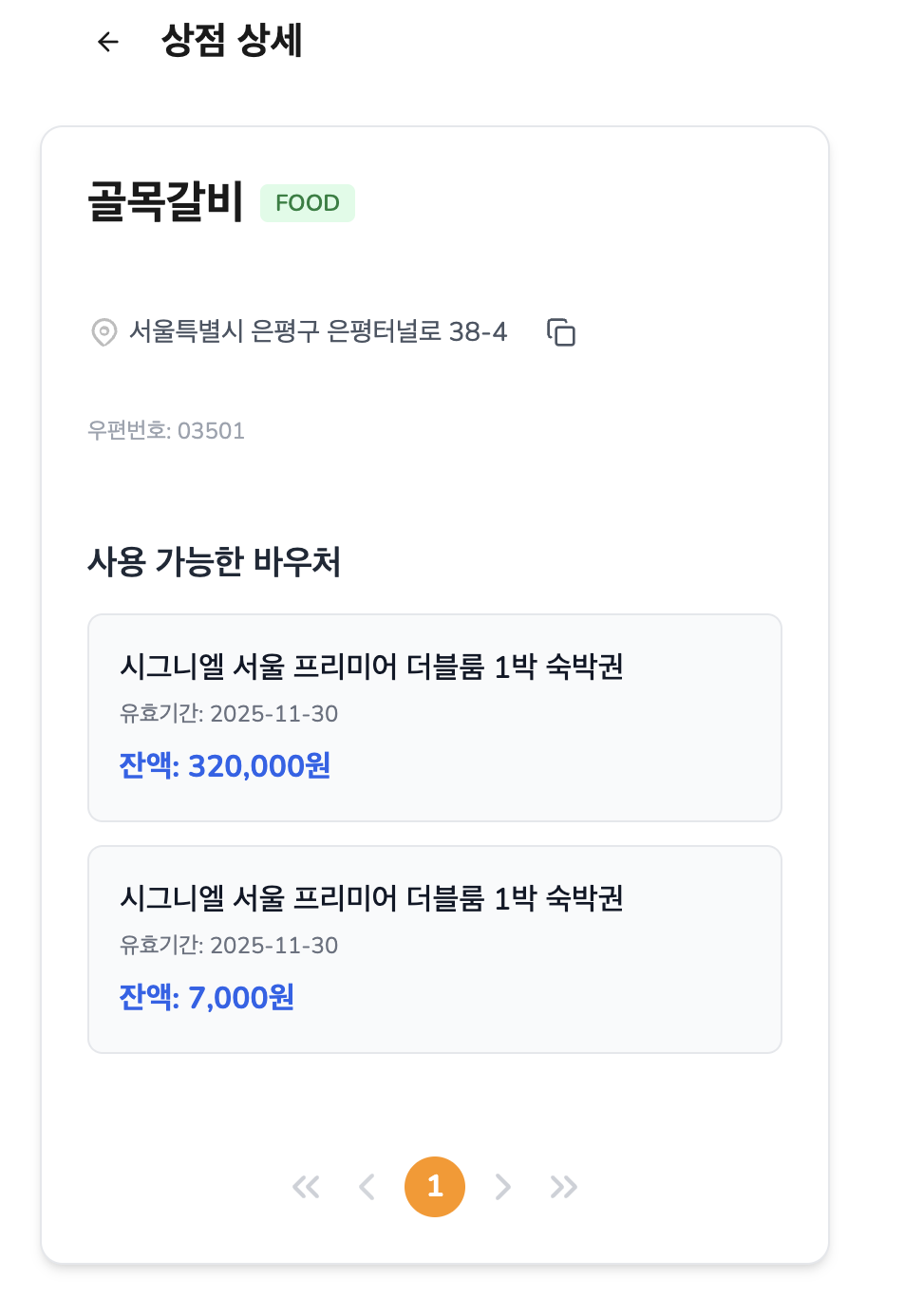 가맹점을 클릭하면 그 상점에서 사용 가능한 내 바우처가 바로 뜨고,