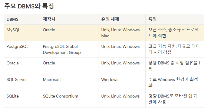 DB에 접근하고 관리할 수 있는 소프트웨어 → DBMS