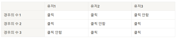 ex) 유저 3명이 웹페이지를 방문했을 때 2명이 버튼을 클릭할 경우는