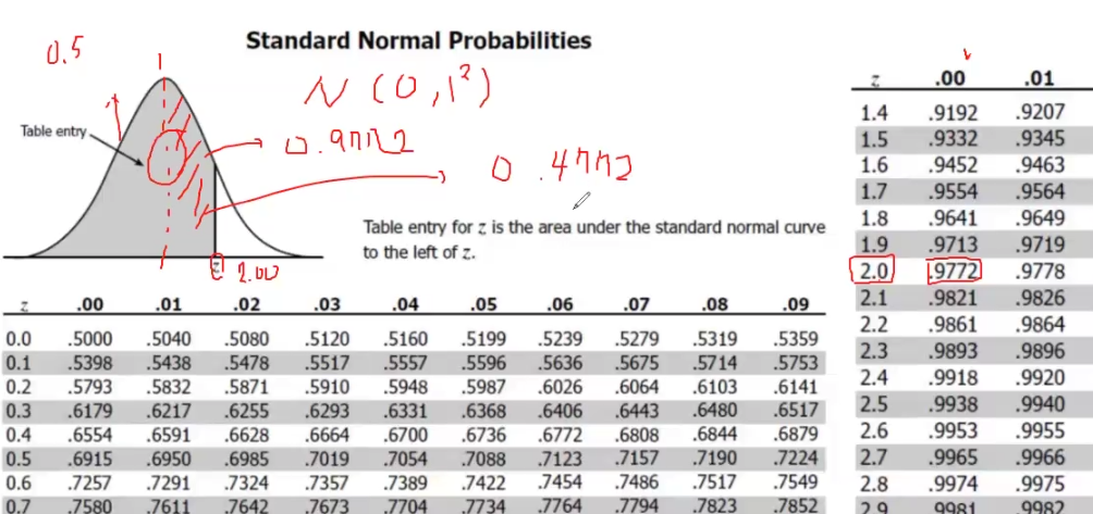 또한 모든 z 값에 대해서 계산해놓은 표가 존재하는데 이를 표준정규분포표 라고 함