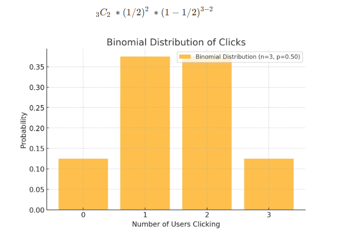 3명의 유저가 버튼을 클릭할 확률이 1/2일 때, 2명의 유저가 클릭할 확률은