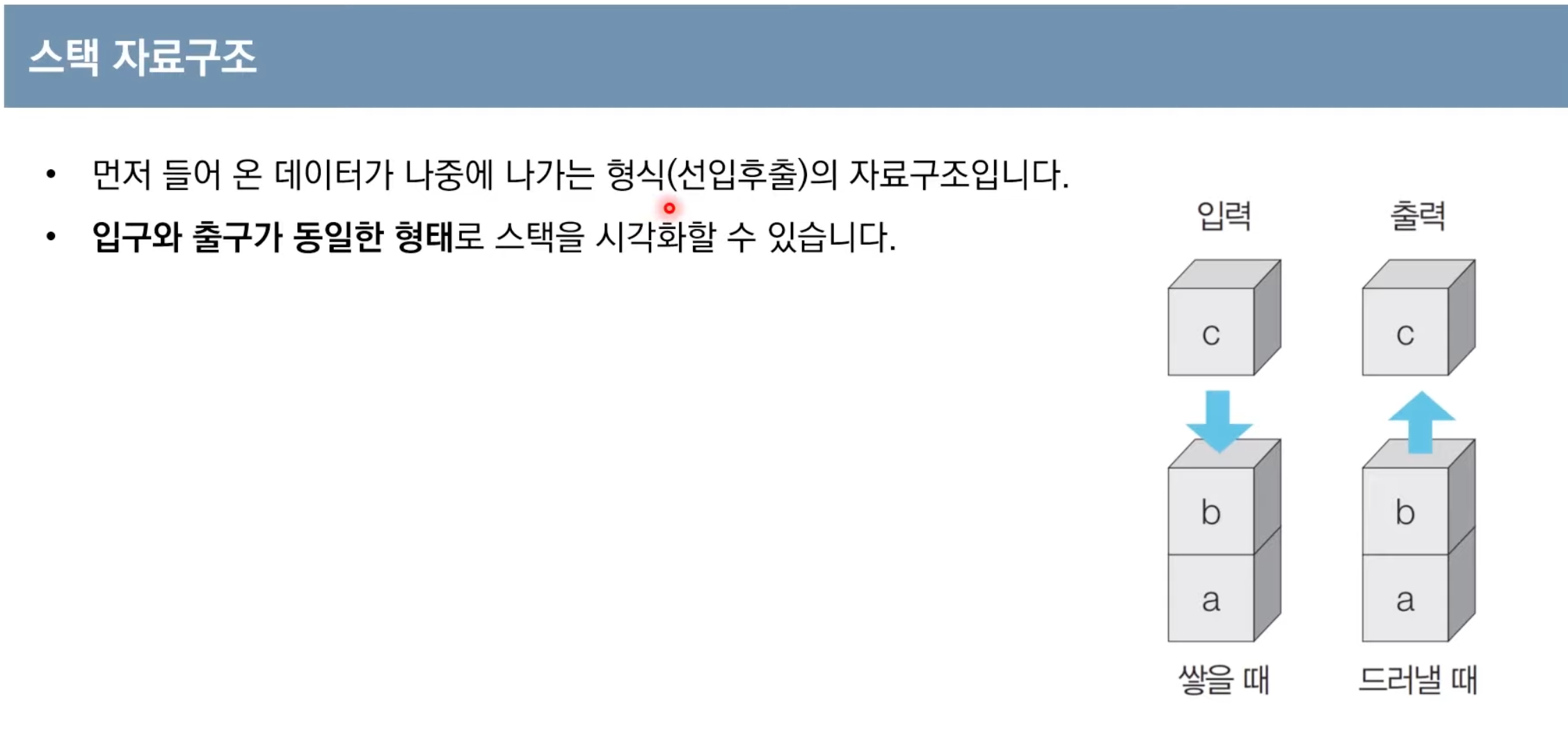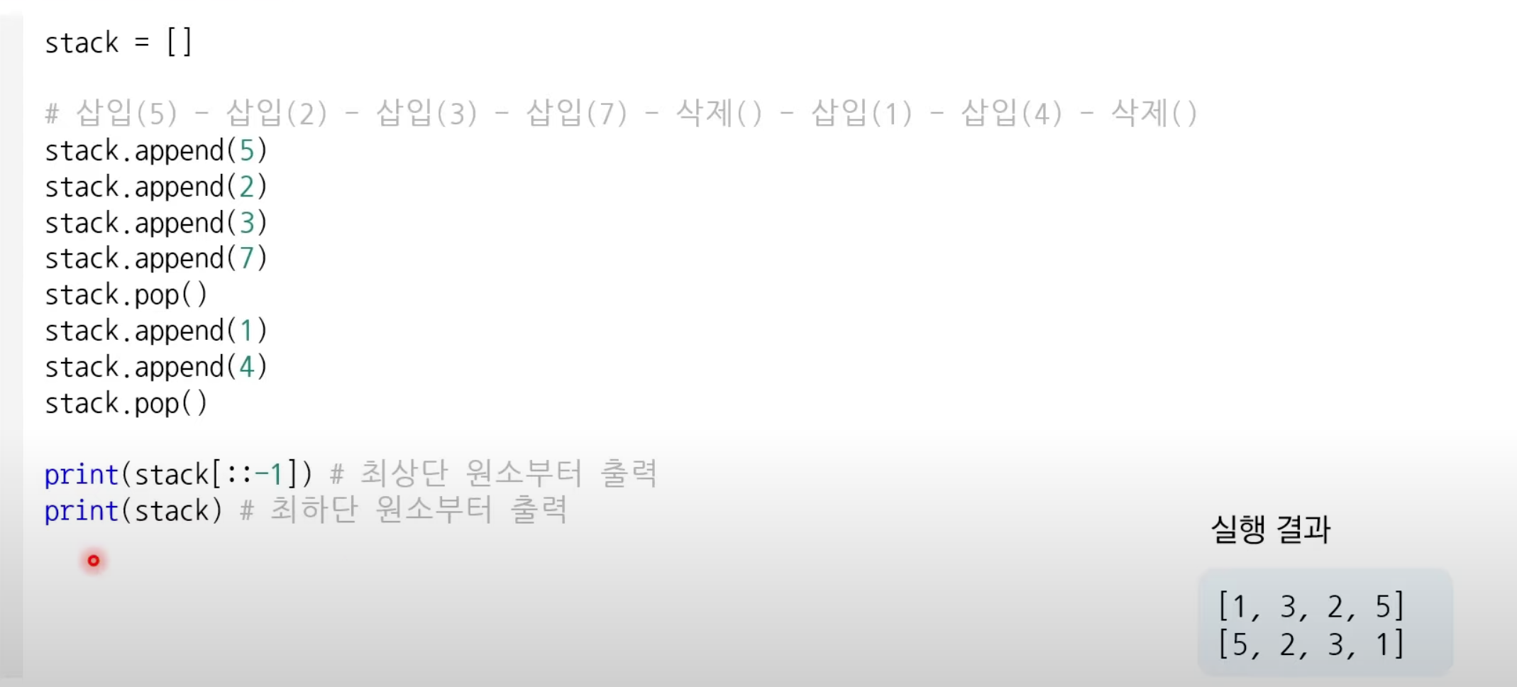 python에서 스택 자료구조는 리스트를 활용해서 구현한다.