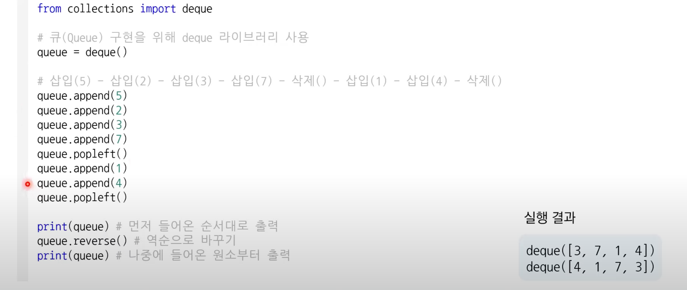 python에서 큐 자료구조는 deque을 이용해서 사용하는 경우가 많다.