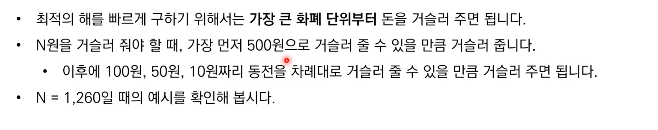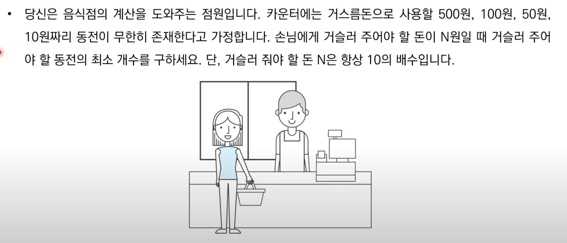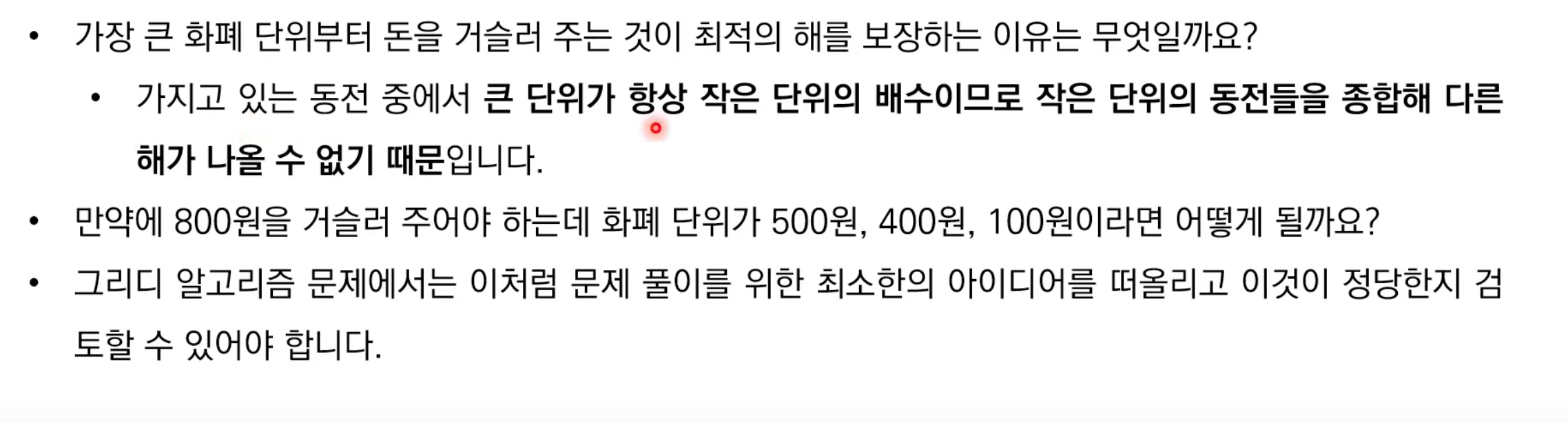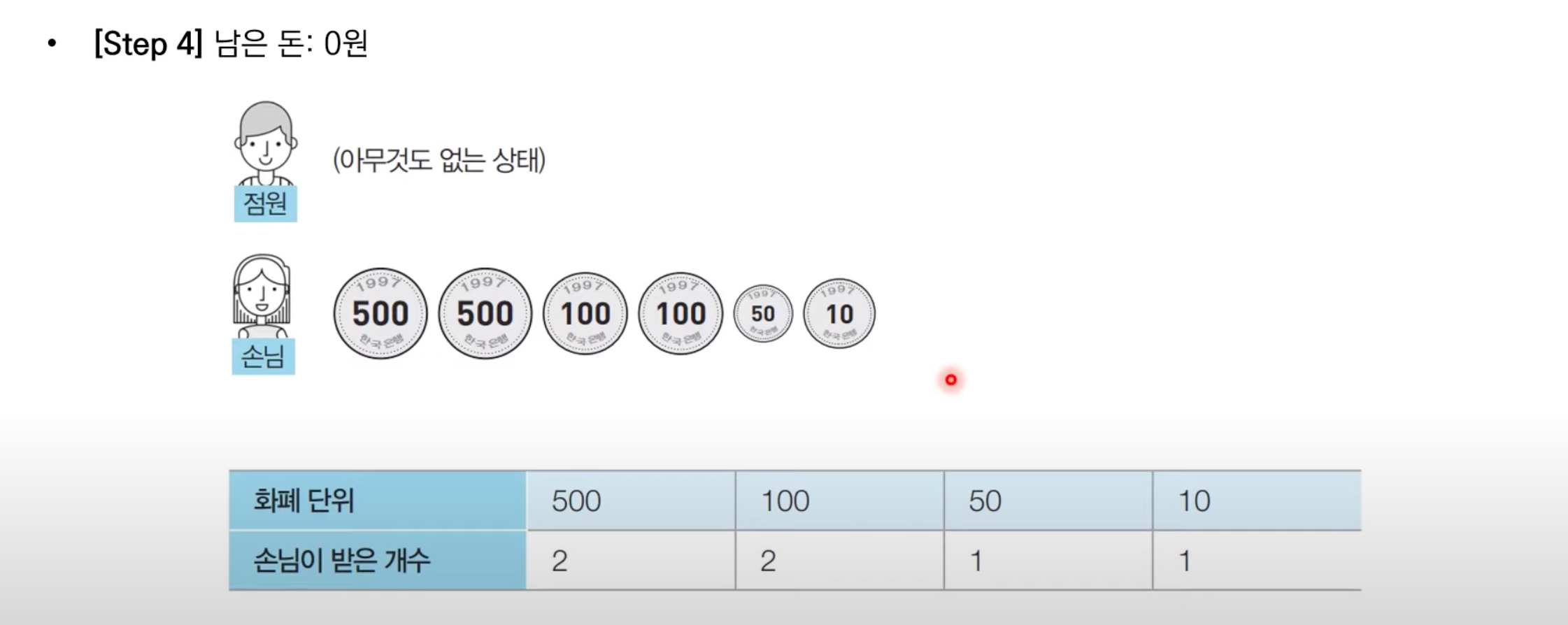 이와같이 큰단위의 동전부터 전달해줘야한다 !