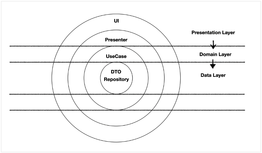 - (response) ← (dto-DataModel) ← ViewModel ← UseCase ← (dto-entity) ←