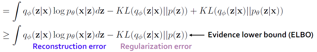 Regularization error 같은 경우는 p(z)와 q_phi(z|x)의 거리가 비슷해져야 한다는 건데 얘도 좀 단순한 식으로 정리가 됨..