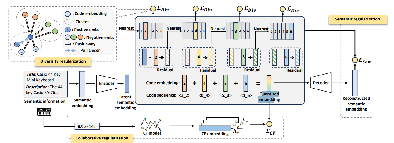 diversity 제약도 주고, CF 랑 loss도 추가해주고,, Reconstruction loss