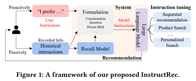user의 선호도는 natural language description으로 표현될 수 있다(instruction이라고 부름)