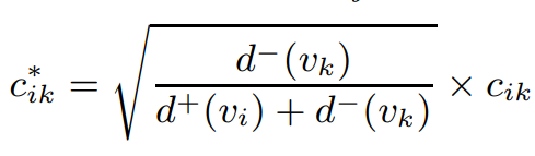 cik는 user i가 user k를 trust하는 정도인데, 만약 user i가 다른 여러 user들을 trust한다면 감소하고, user k가 다른 user들에 의해 많이 trusted된다면 증가함