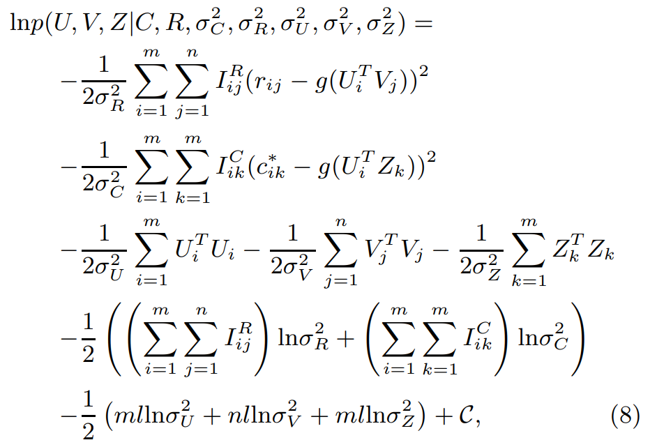 결과적으로 U를 공통으로 학습하고 두 식을 합치면 (8)과 같이 됨